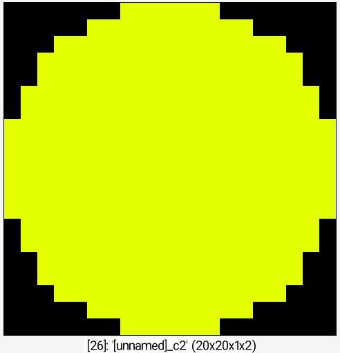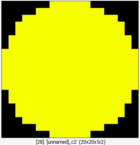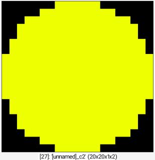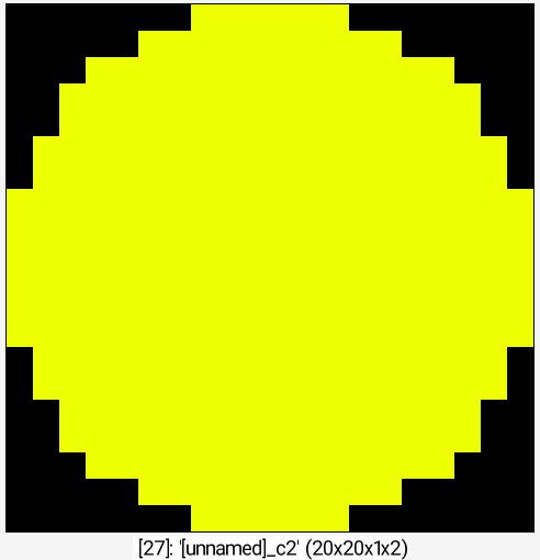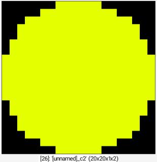 Command: 256,256 noise 0.1,2 eq 1 dilate_circ 20 label_fg 0,1 normalize 0,255 +neq 0 *[-1] 255 append c +autocrop_components ,